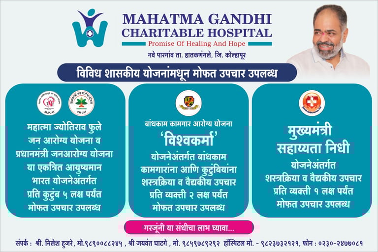 At Mahatma Gandhi Charitable Hospital, our mission is to ensure that no patient is denied quality medical care due to financial constraints. We extend a wide range of government and trust-sponsored health schemes to the community.