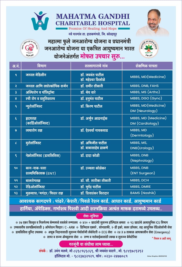 Mahatma Gandhi Charitable Hospital, Vathar Kodoli Rd, Nave Pargaon, Maharashtra 416113